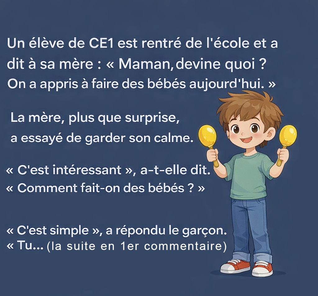 Un élève de CE1 est rentrée de l’école et il a appris quelque chose……..