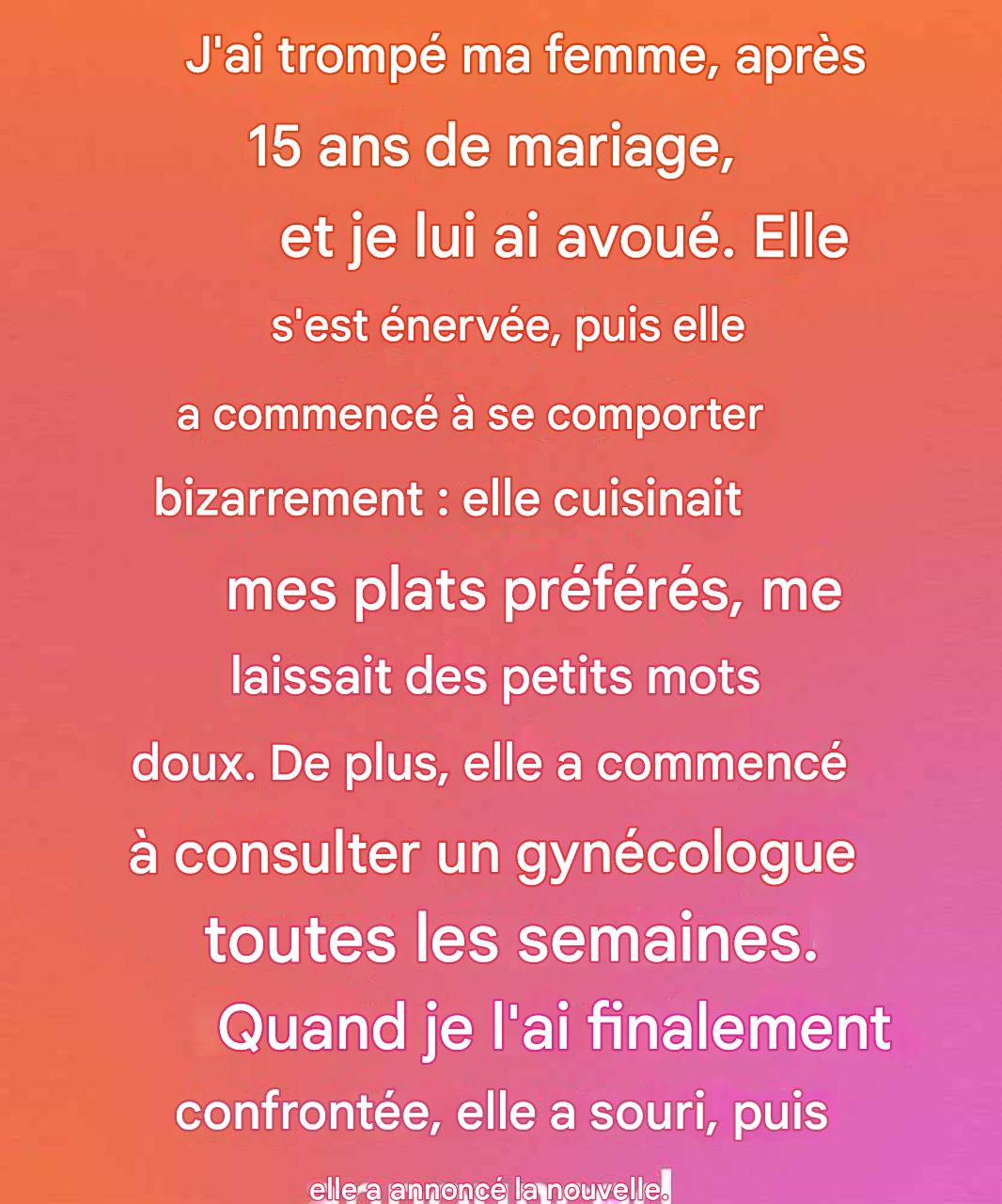 Après quinze ans de mariage, j’ai commis l’erreur qui brise la confiance et laisse une cicatrice indélébile : j’ai été infidèle à ma femme. Pendant des semaines, j’ai vécu avec la culpabilité, incapable de manger, de dormir ou de la regarder dans les yeux. Le secret pesait si lourd qu’il empoisonnait chaque conversation, chaque instant … Read more