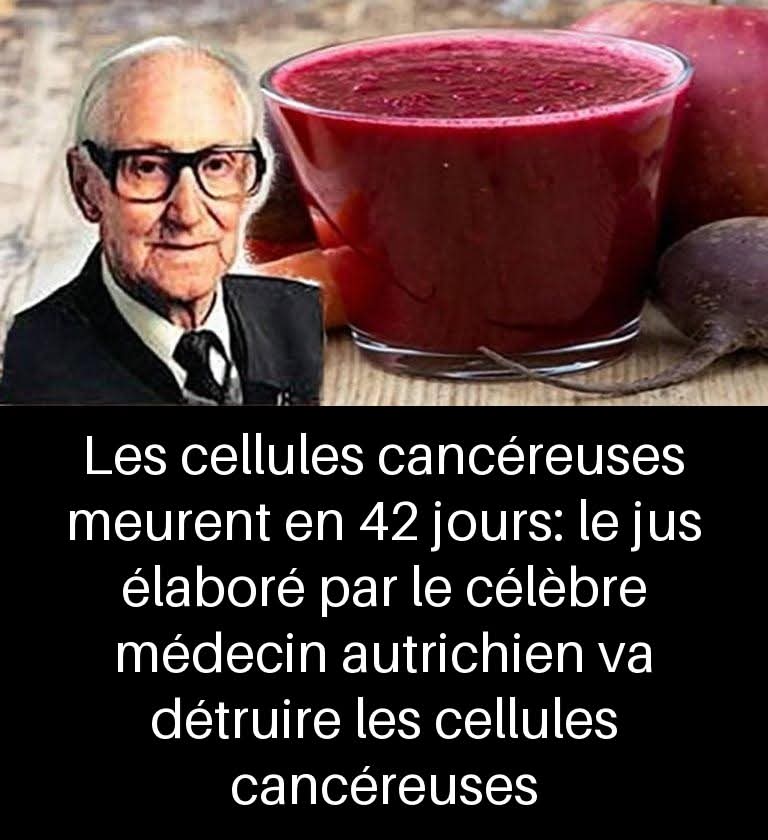 Il a élaboré ce jus unique qui fournit des résultats exceptionnels pour faire face au cancer. Il a traité plus de 45 000 personnes aux prises avec le cancer et d’autres maladies incurables avec cette méthode. Breuss a déclaré que le cancer peut survivre seulement avec l’aide de protéines.